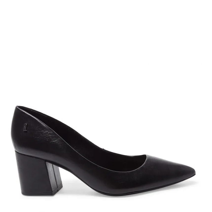Scarpin Couro Pelica Soft Bico Fino Salto Bloco Preto Santa Lolla
