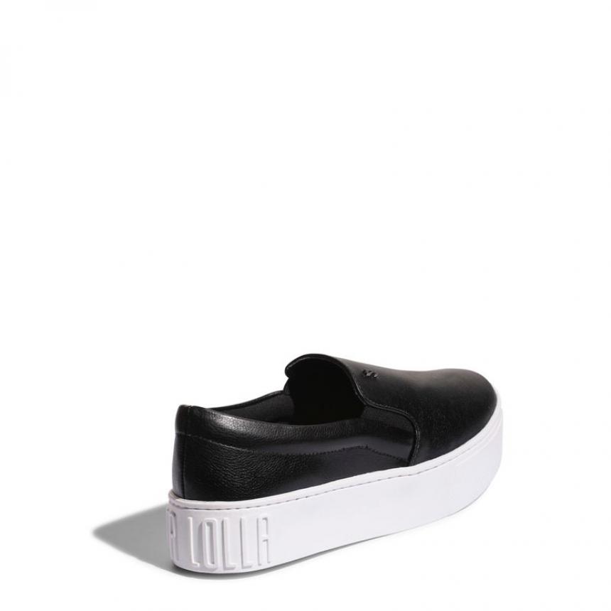 Tênis Santa Lolla Slip On Caixa Alta Preto Couro