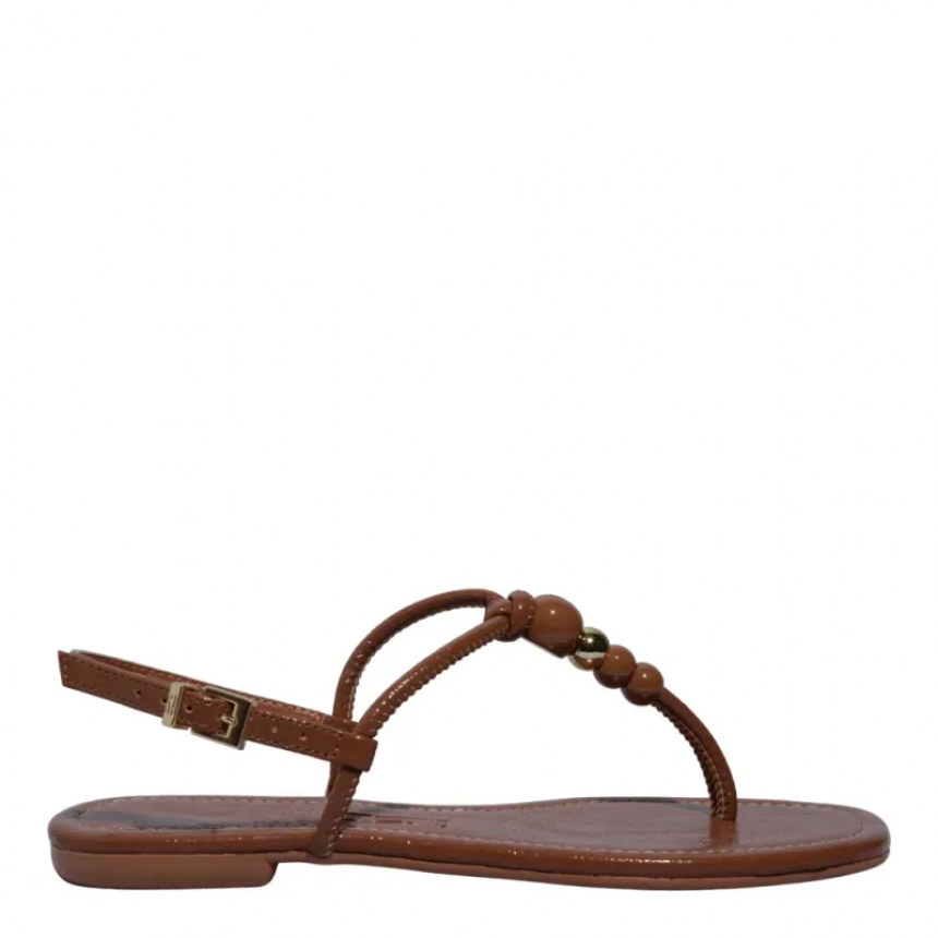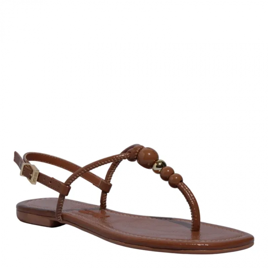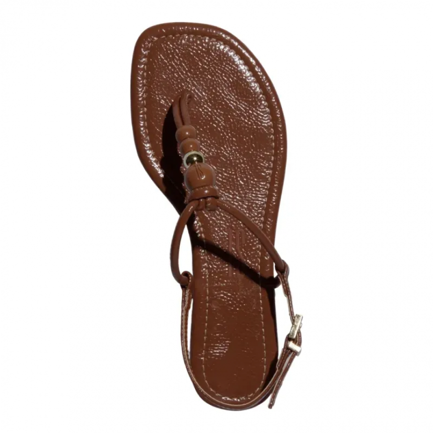 Rasteira confeccionada em material verniz, une delicadeza e estilo em um design moderno. Conta com miçangas aplicadas no cabedal, que adicionam um toque artesanal e charmoso ao visual. Com solado baixo, proporciona conforto e praticidade no uso diário. Perfeita para compor produções leves e elegantes, ideal para dias quentes e ocasiões casuais.