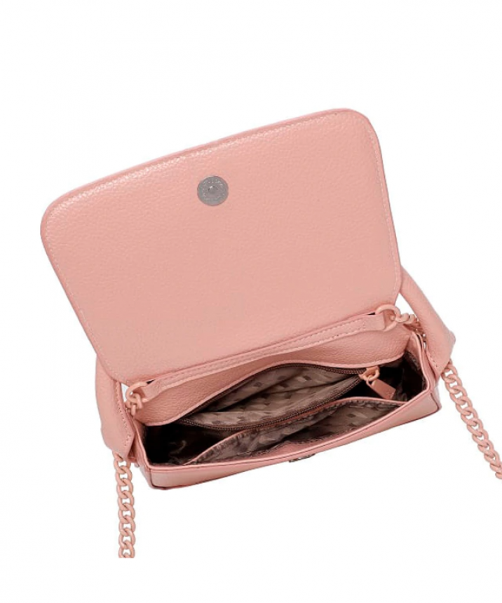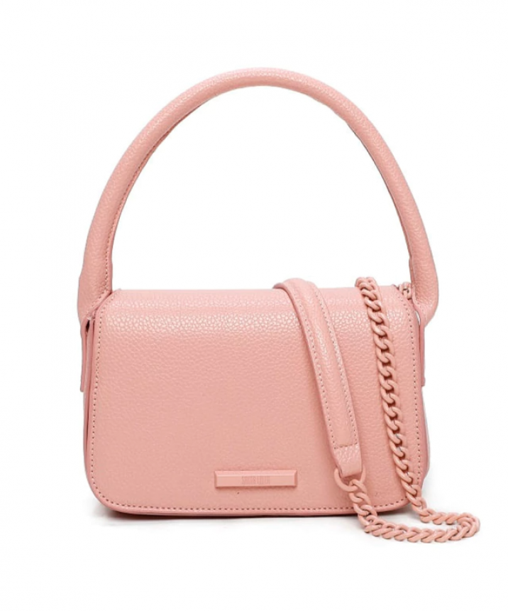 Bolsa de mão floater nude rosado, possui espaçoso compartimento interno, alça de mão com opção também de alça transversal em corrente. fechamento em botão magnético.