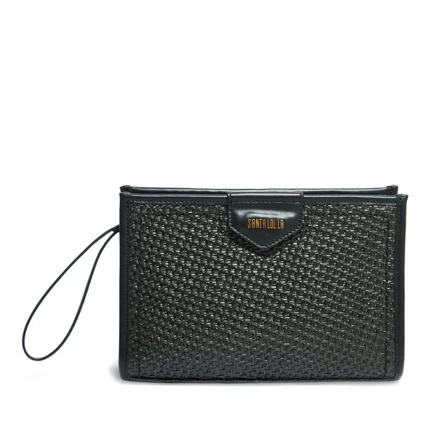 Bolsa Clutch Feminina confeccionada em palha com acabamento tramado, modelo médio e detalhe frontal do logotipo. Possui fecho superior em zíper, compartimento interno e com alça fina de punho. A Bolsa Clutch é uma opção sofisticada e elegante para mulheres que desejam um acessório versátil e prático para o dia a dia.