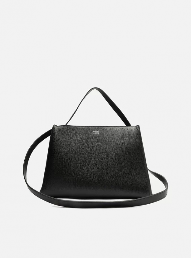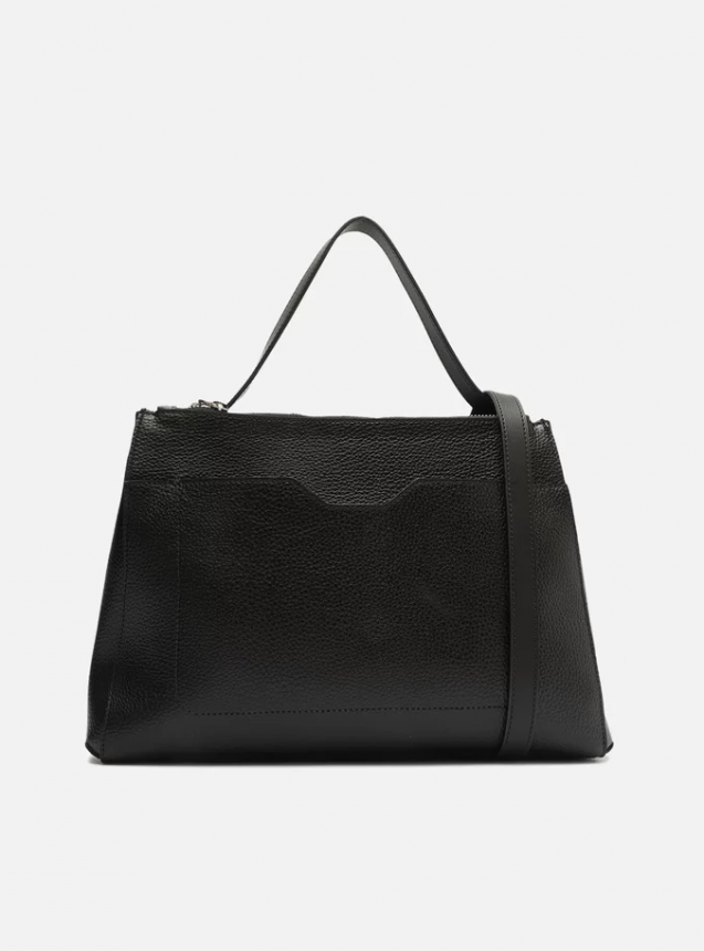 Descrição: Bolsa tote grande preta. O modelo tem formato estruturado e acabamento texturizado. Traz alça de mão e alça tiracolo longa, além de fecho em zíper e puxador. Com divisória superior e bolso externo frontal, que acompanha pouch removível com fecho em zíper e puxador.