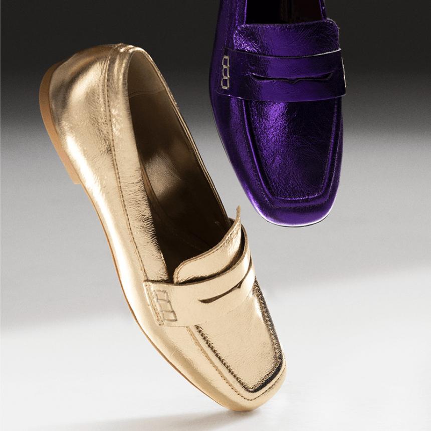 MOCASSIM DOURADO SANTA LOLLA COURO BICO QUADRADO