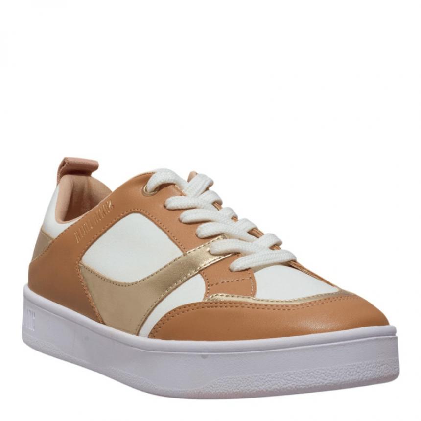 Tênis confeccionado em napa Santorine, com acabamento dourado que traz sofisticação ao visual. Possui design moderno e urbano, ideal para compor looks casuais com um toque fashion. O solado flatform garante conforto e estilo, enquanto o fechamento em cadarço proporciona ajuste seguro aos pés. Um modelo versátil e elegante para o dia a dia.