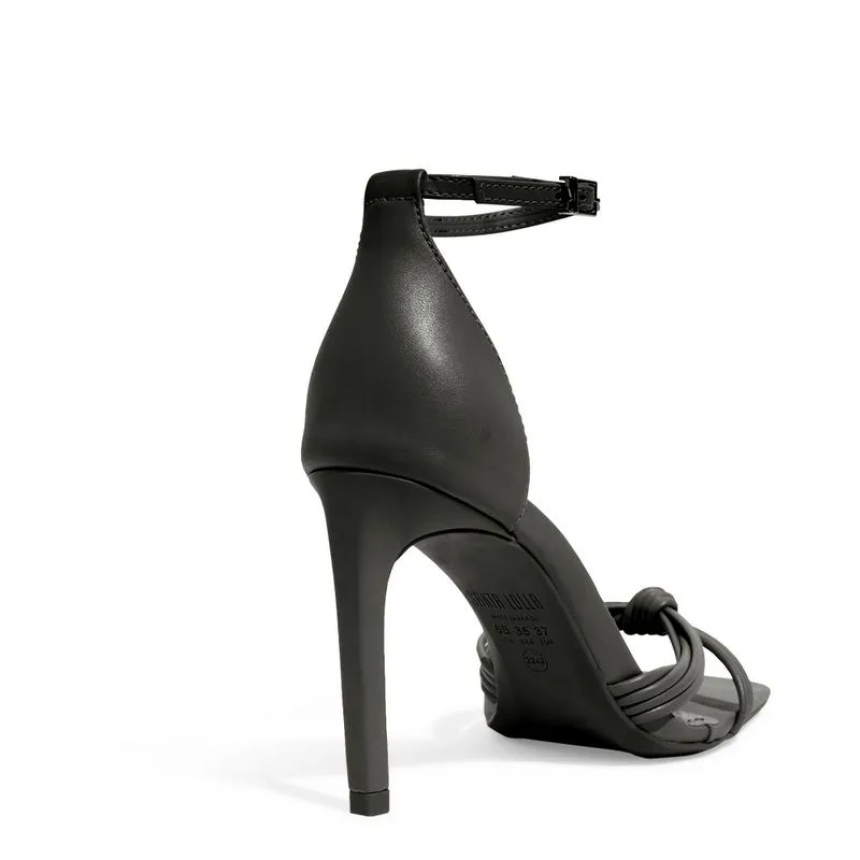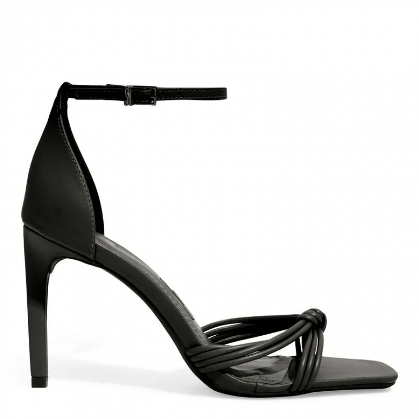 Sandalia Napa Soft Preta Bico Quadrado Salto Alto Fino