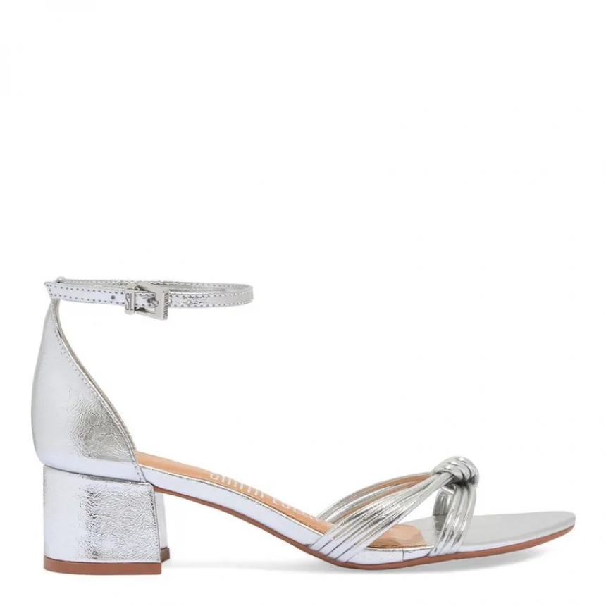 Sandália Craquelê Prata Salto Bloco Baixo