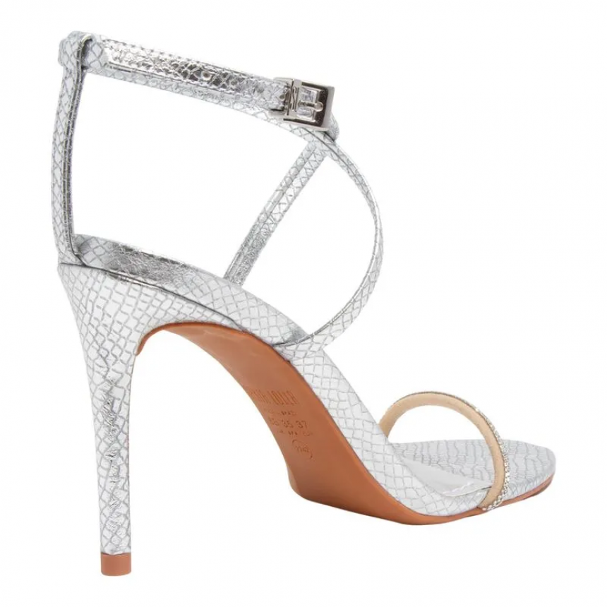 Sandália Cobra Prata Metalizada Salto Alto Brilho