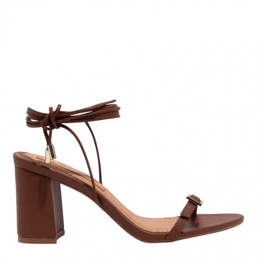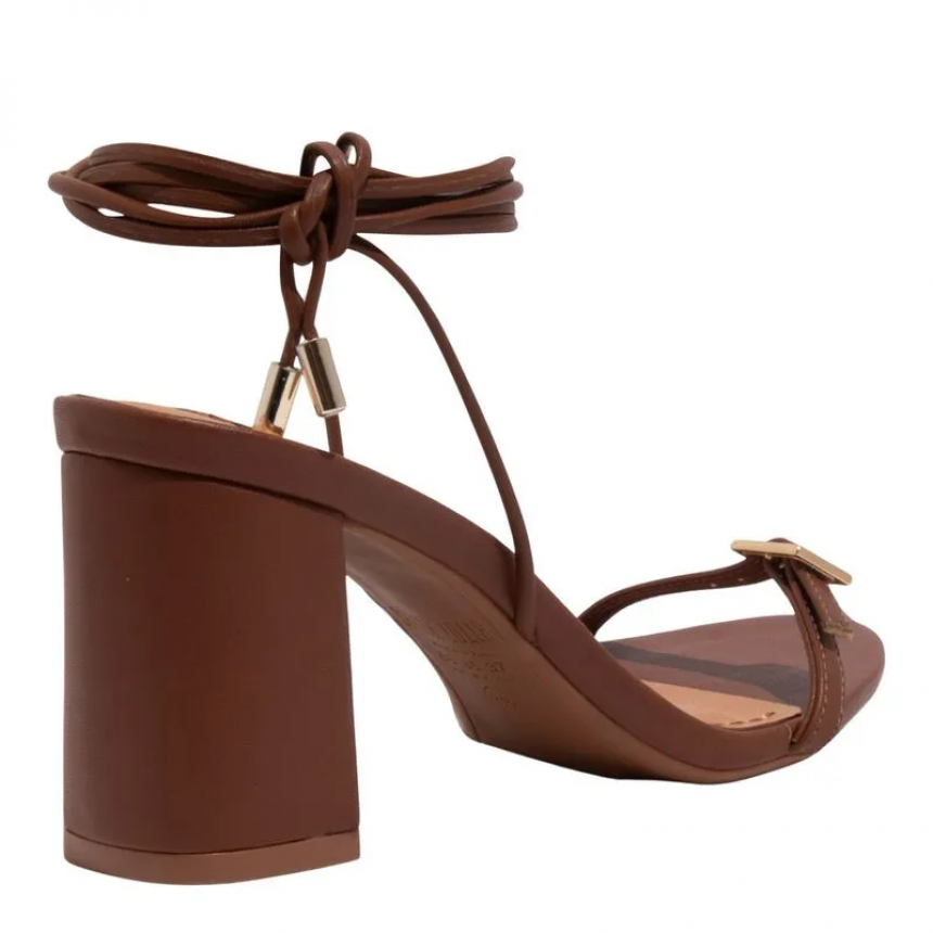 Sandália Amarração Napa Soft Marrom Salto Grosso
